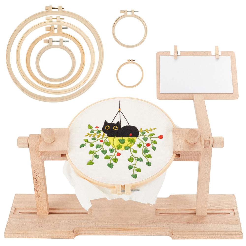 1 Set Wooden Holder, with Iron Screws and Findings, 6Pcs 6 Styles Plastic Imitation Bamboo Embroidery Hoops